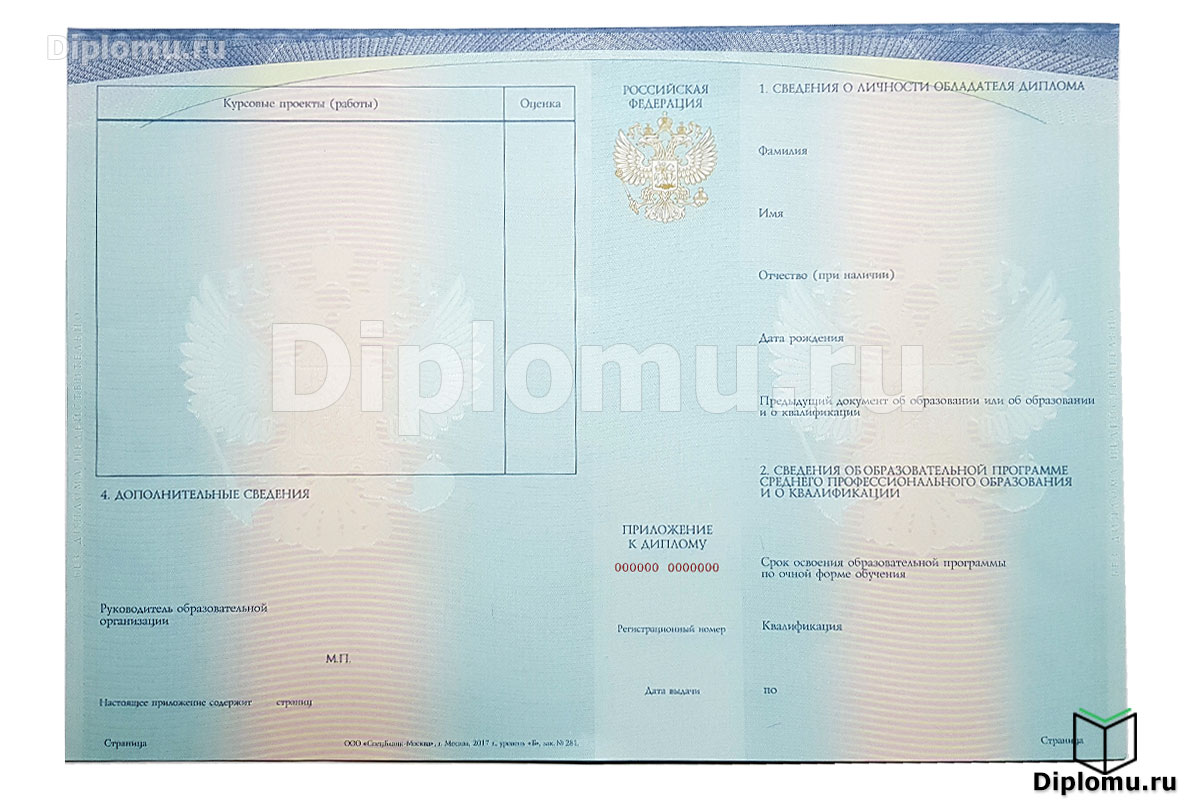 Приложение к диплому ССУЗа 2014-2025 годов при покупке отдельно; |